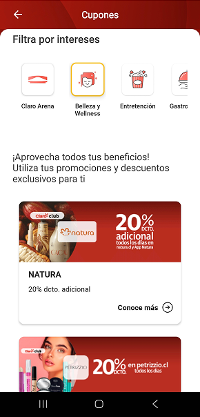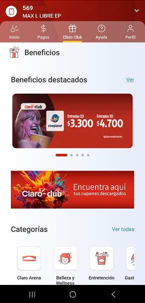 Actualizamos la sección Claro Club, donde tenemos descuentos exclusivos para eventos, tiendas y restaurantes. Puedes canjear cupones y usarlos mediante códigos QR.